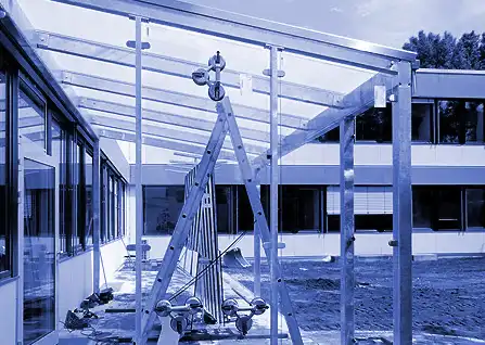 Die breit aufgestellte Edelstahlverarbeitung beinhaltet Konstruktionsbau vom Balkongeländer über Fassaden und Tragwerksbauten bis hin zu Rohrleitungen und Blecharbeiten. Anarbeitung in allen gängigen Fügetechniken, insbesondere in Schweißverbindungen als Wolfram-Inertgasschweißen oder als Bolzenhubschweißung.