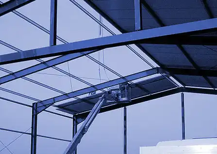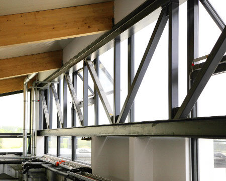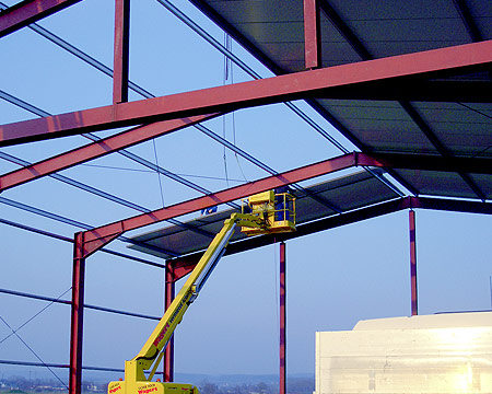 Stahlbau im Dachbereich mit integrierten Lichtbändern und Isodach