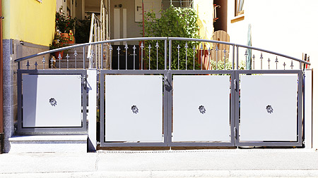 Zaunanlage mit Türelement, Edelstahl und Stahlkonstruktion pulverbeschichtet