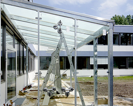 Windfang gefertigt aus Stahlrohr mit Glaselementen